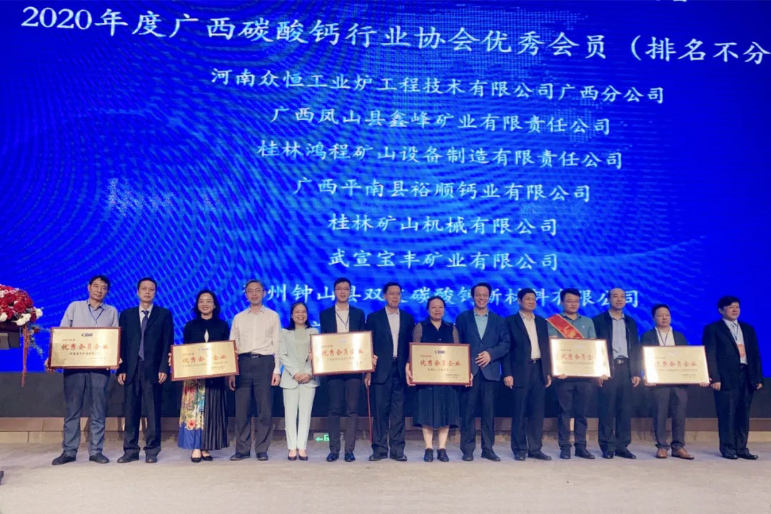 桂林礦機作(zuo)爲礦山機械的重(zhòng)要一員,公司從第(dì)一屆💯開🌈始積極參(cān)與協會會議會展(zhan),公司領導也非常(cháng)支持協會各項工(gōng)作👉并投身綠色發(fā)展道路。會中,公司(si)領導肖文輝獲得(de)2020年度廣西碳酸鈣(gài)行業優秀企業家(jia),同時💰公司還榮獲(huo)了廣西碳酸鈣行(hang)業協會優秀會員(yuán)獎。