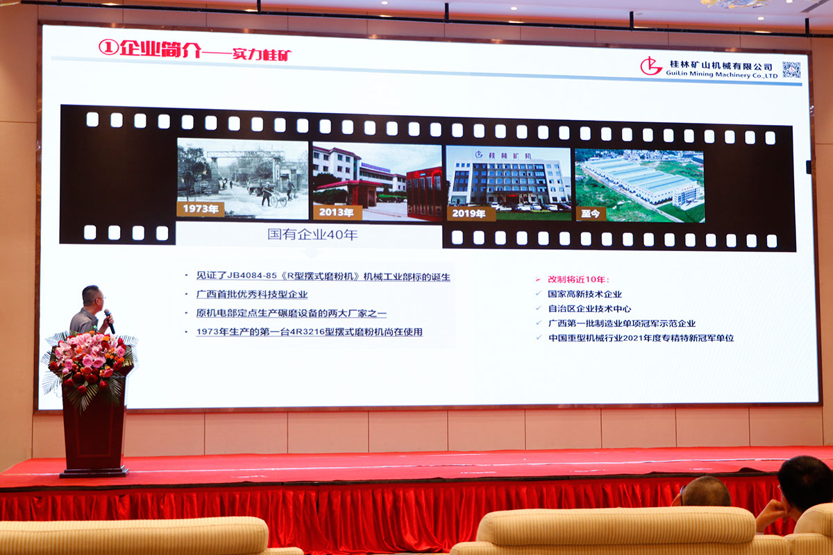 作爲行業久(jiu)負盛名的粉體設(shè)備研發、制造企業(yè),桂林礦機副總工(gong)程師、研發部經理(li)王劍瓊應邀出席(xí)并作大會發言,他(ta)回顧了桂林礦機(jī)在國有企業40年裏(li)頭的榮譽,見證了(le)《R型擺式磨粉機》行(hang)業标準的誕生;改(gǎi)制後🌈不斷與時俱(ju)進開拓👌創新,榮獲(huò)國家高新💞技術企(qi)業、自治區“專精特(tè)♻️新”中小企業、第一(yi)批制造業單項冠(guan)軍示範企業等殊(shu)榮🔴。