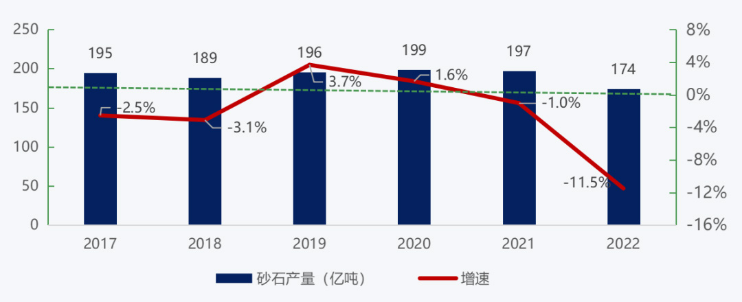 2017-2022年我國砂(sha)石産量變(biàn)化情況