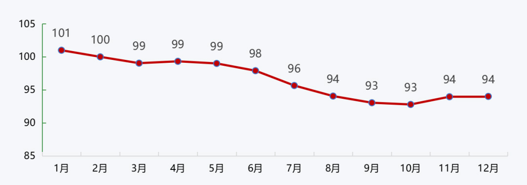 2025年12月,碎石(shi)均價94元/噸(dūn),12月同比下(xia)跌7.9%。