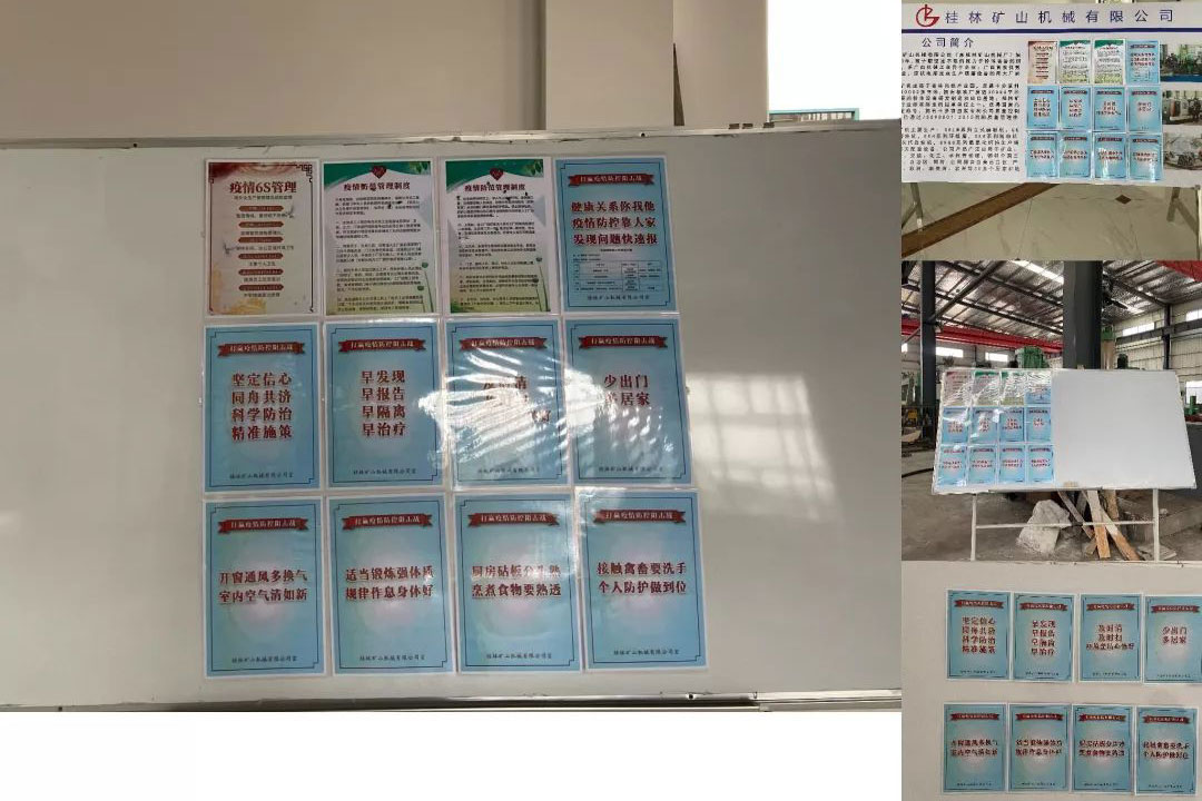爲(wèi)防控疫情,桂(guì)林礦機嚴格(ge)按照防控指(zhǐ)示精神,從細(xi)節處展開貼(tiē)心嚴密的防(fang)護工作,在廠(chǎng)區、辦公室、食(shí)堂、宿舍等區(qu)域張貼各㊙️種(zhong)防控知識宣(xuan)傳海報,提高(gāo)員工的防控(kòng)意識,保障每(měi)一個員工💞的(de)安全與健康(kāng)。