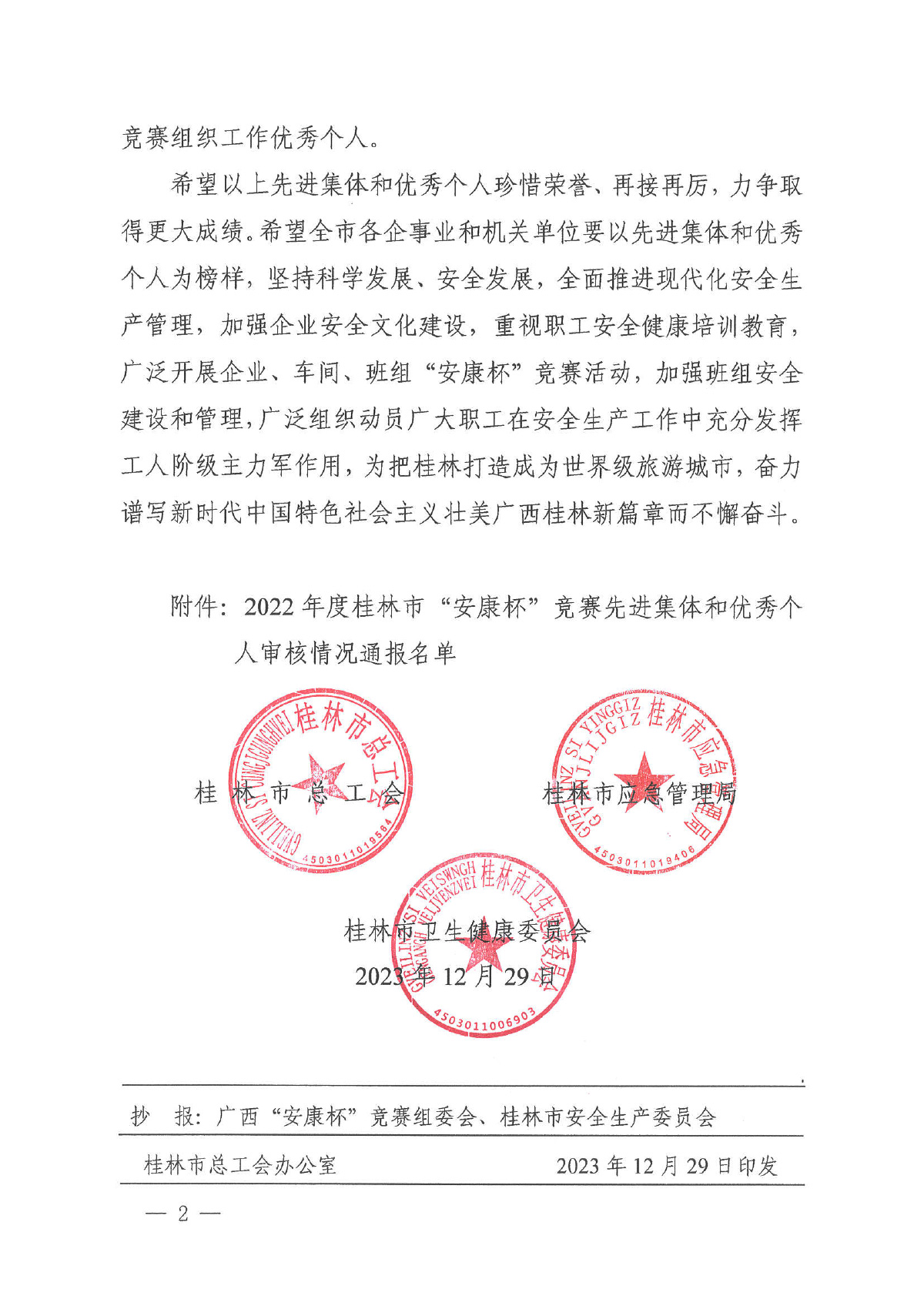 2022年以來,桂林(lín)市各企事業(yè)和機關單位(wei)積極響應号(hào)召,深入開展(zhan)💛了以“人人講(jiǎng)安全,個個會(hui)應急”爲主題(ti)的“安康杯”競(jìng)賽活動🐆。在這(zhe)🏃🏻場旨在提升(shēng)安全意識、增(zēng)強應急能力(li)的競賽中🈲,桂(guì)林礦山機械(xie)🔞有限公司(以(yi)下簡稱桂🌈林(lín)礦機)以其卓(zhuó)越的表現和(hé)突出的成績(jì),榮獲2022年度桂(guì)林市“安康杯(bēi)🏃♂️”競賽先進集(ji)體殊榮。