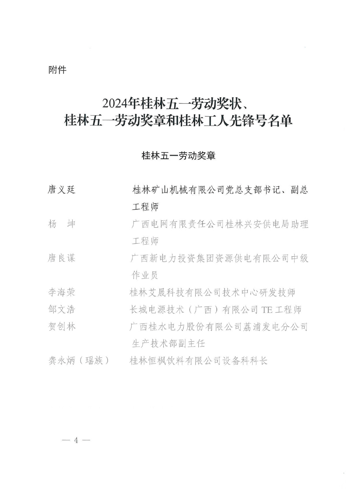 爲表(biao)揚先進、樹立榜(bang)樣。近日,桂林市(shi)總工會發文關(guān)于表揚2024年桂林(lin)五一勞動獎和(hé)桂林工人先鋒(fēng)号的通報,決定(ding)授予唐義廷等(děng)49名職工桂林五(wu)一勞動獎章。
